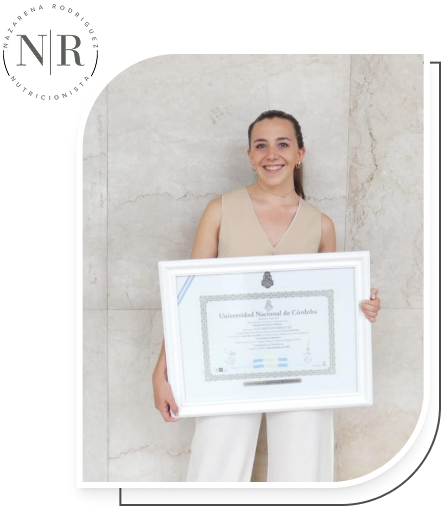 Soy Nazarena Rodríguez, Licenciada en Nutrición, egresada de la Universidad Nacional de Córdoba, MP 4849 . Me especializo en Nutrición Deportiva, Patologías Digestivas y Trastornos de la Conducta Alimentaria, áreas en las que me formé a través de posgrados y diplomaturas en instituciones como UNC, Conceptual Capacitaciones, CEDA, SANC y Sensus, ABND.
